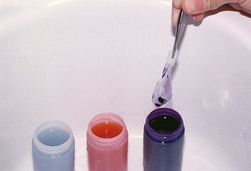 . Les deux extémités de la bande sont collées de manière à former une boucle. La surface collante étant vers l'extérieur.