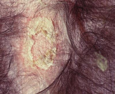 est constituée de squames disposées en cercle et se desquamant à partir du centre.