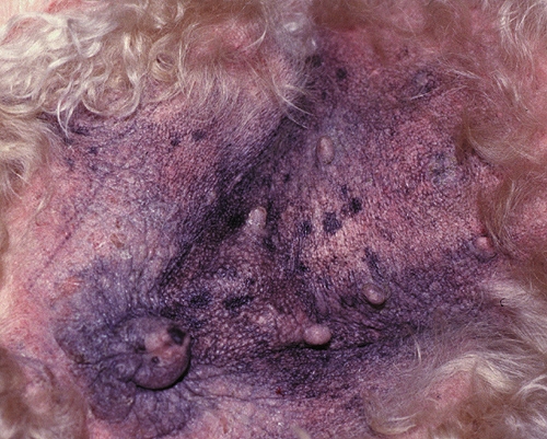 est une exagération des marques d'une peau épaissie et durcie. Noter l'hyperpigmentation